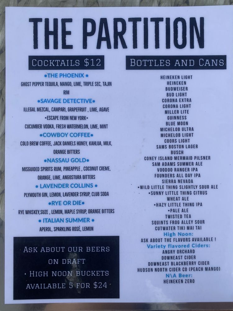 Introducing The Partition, a Saugerties landmark known for its great vibe, outdoor seating, live music, TV, and heated outdoor seating. Located at 124 Partition St, Saugerties, NY, this spot has garnered rave reviews from customers like Jim O., Anthony D., Sensi V., Ziltoid The Coffee Snob C., and Lauren G. Visitors praise the friendly staff, upbeat atmosphere, and delicious food offerings. From the best burger in town to loaded fries, street corn, and empanadas, the menu may be limited but the dishes are surprisingly good. The fries are perfectly crisp on the outside yet soft inside, showcasing the chef's pride in each dish. The laid-back atmosphere and on-point drinks make The Partition a go-to spot for locals and travelers alike. Don't miss out on this gem for a memorable dining experience.